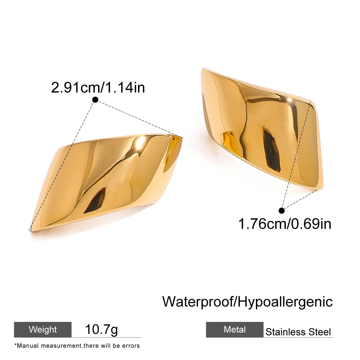 - ピアスのポスト部分は素材の特性上、キャッチがきつく感じられる場合や、スムーズに取り外せないことがありますが、これは不良品ではありませんのでご了承ください。特に新品時はゴールドメッキコーティングの厚みにより、やや固めに感じることがございます。無理に力を加えるとポストの曲がりや破損につながる可能性があるため、優しくゆっくりと着脱いただくことをおすすめします。