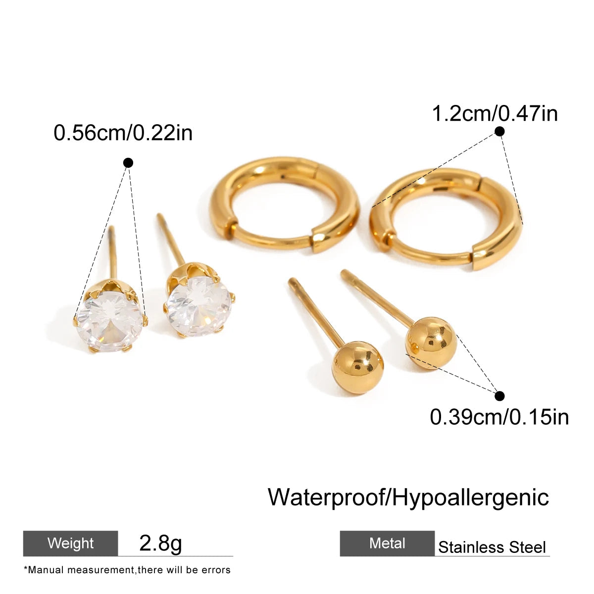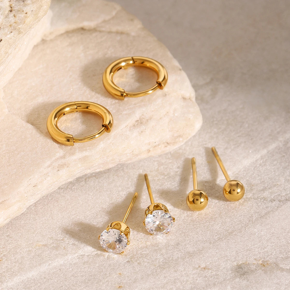 ステンレス304 低ニッケル 水に濡れても錆びにくい 18Kゴールドメッキ ピアス 3点セット 【YJ02872】
