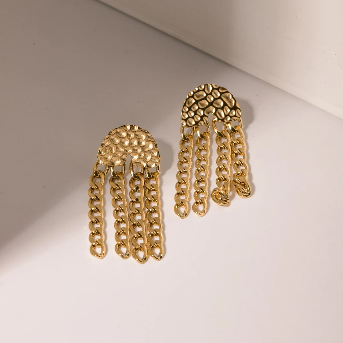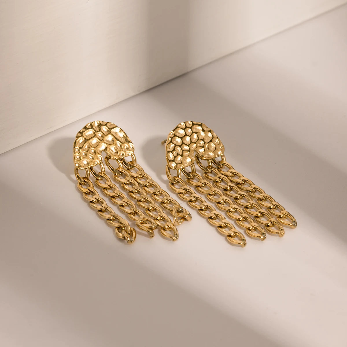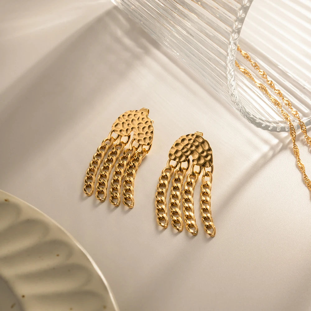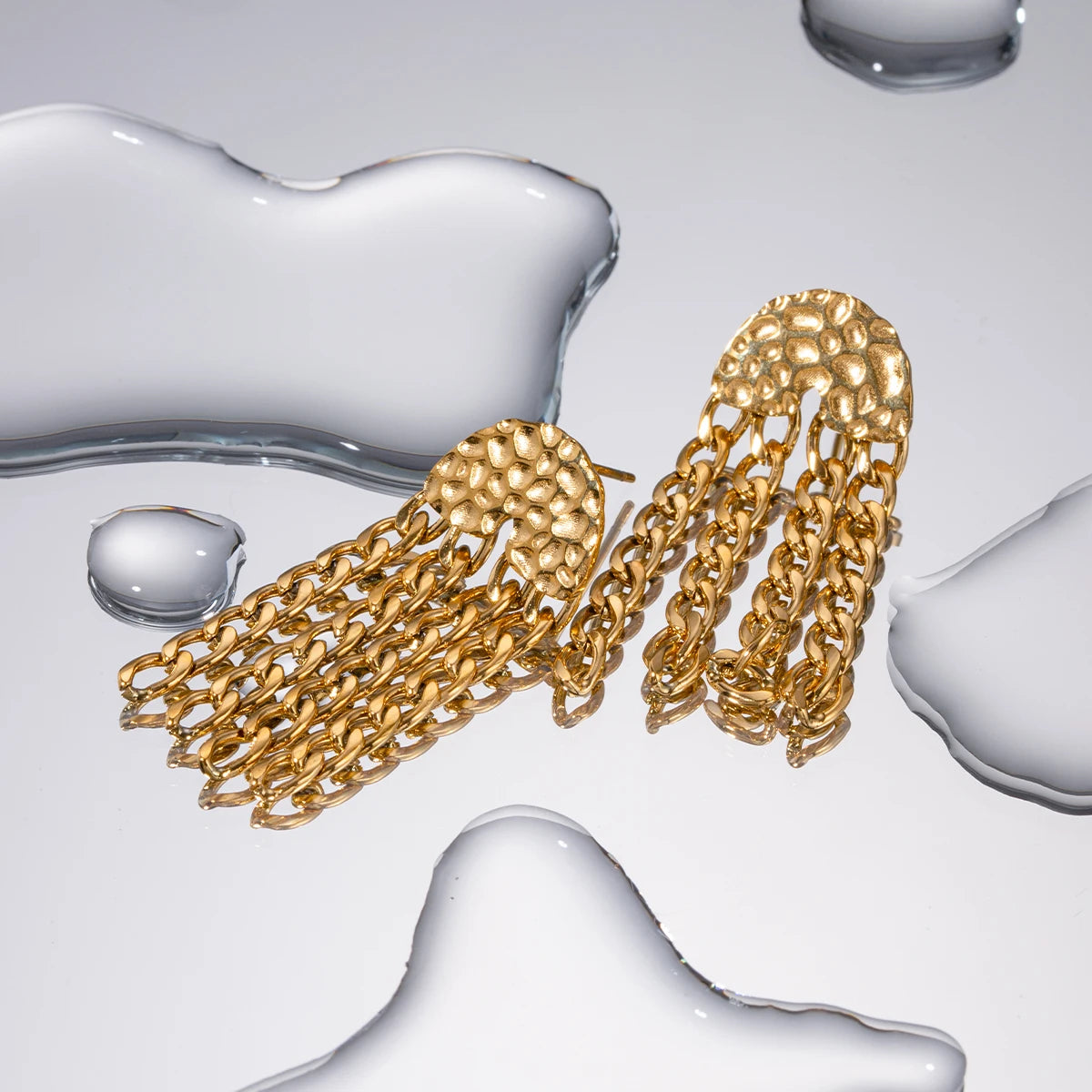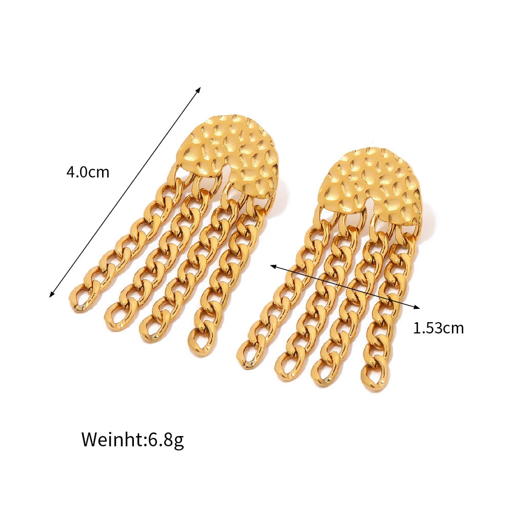 ステンレス304 低ニッケル 水に濡れても錆びにくい 18Kゴールドメッキ ピアス タッセル チェーン 【YJ03038】