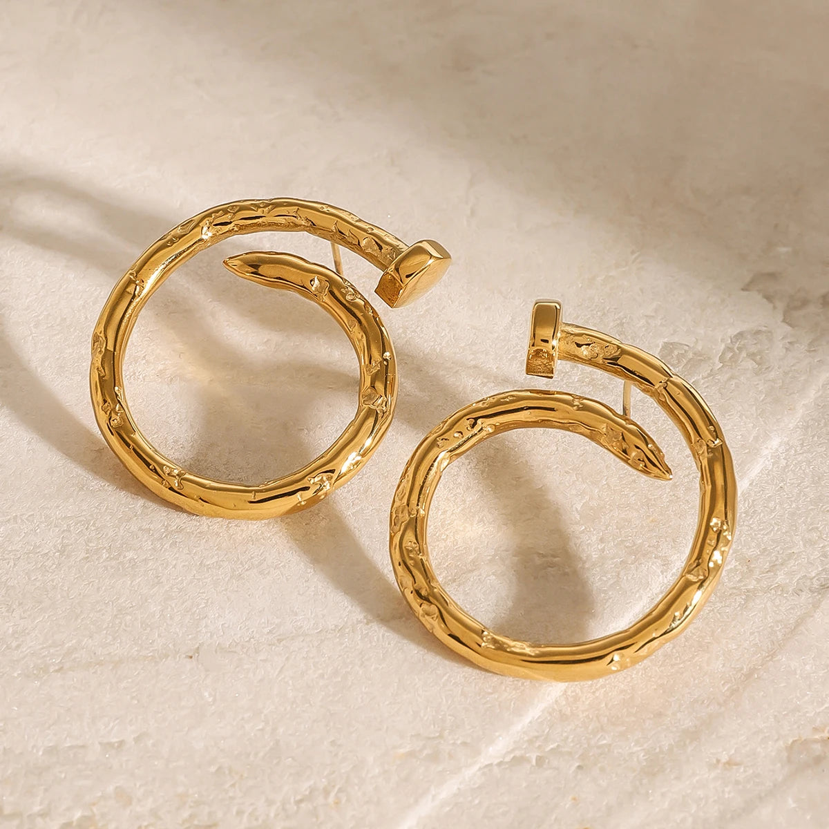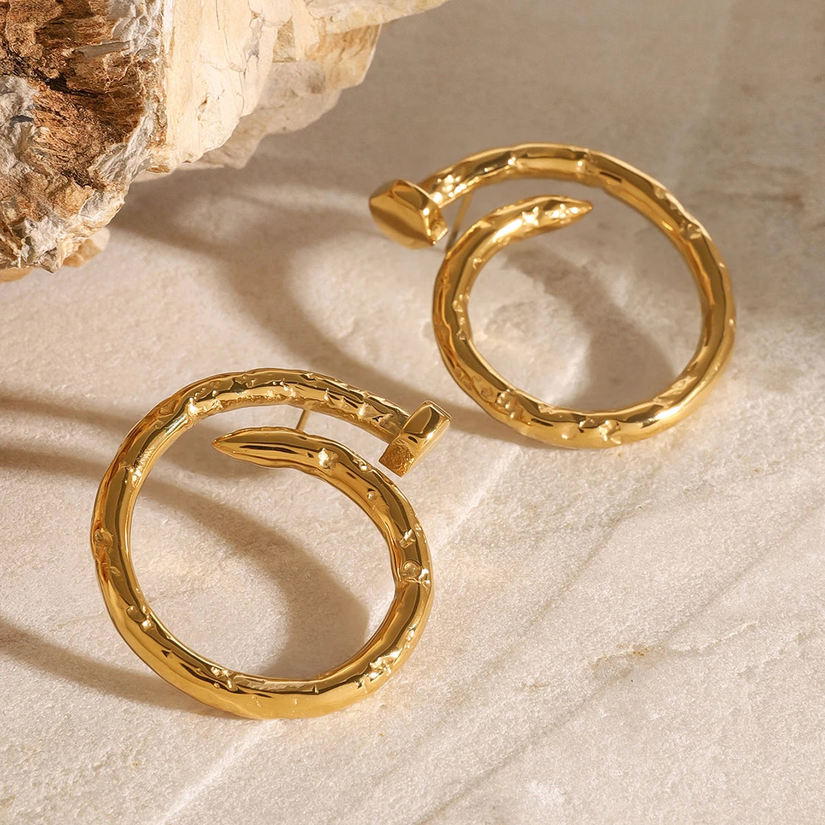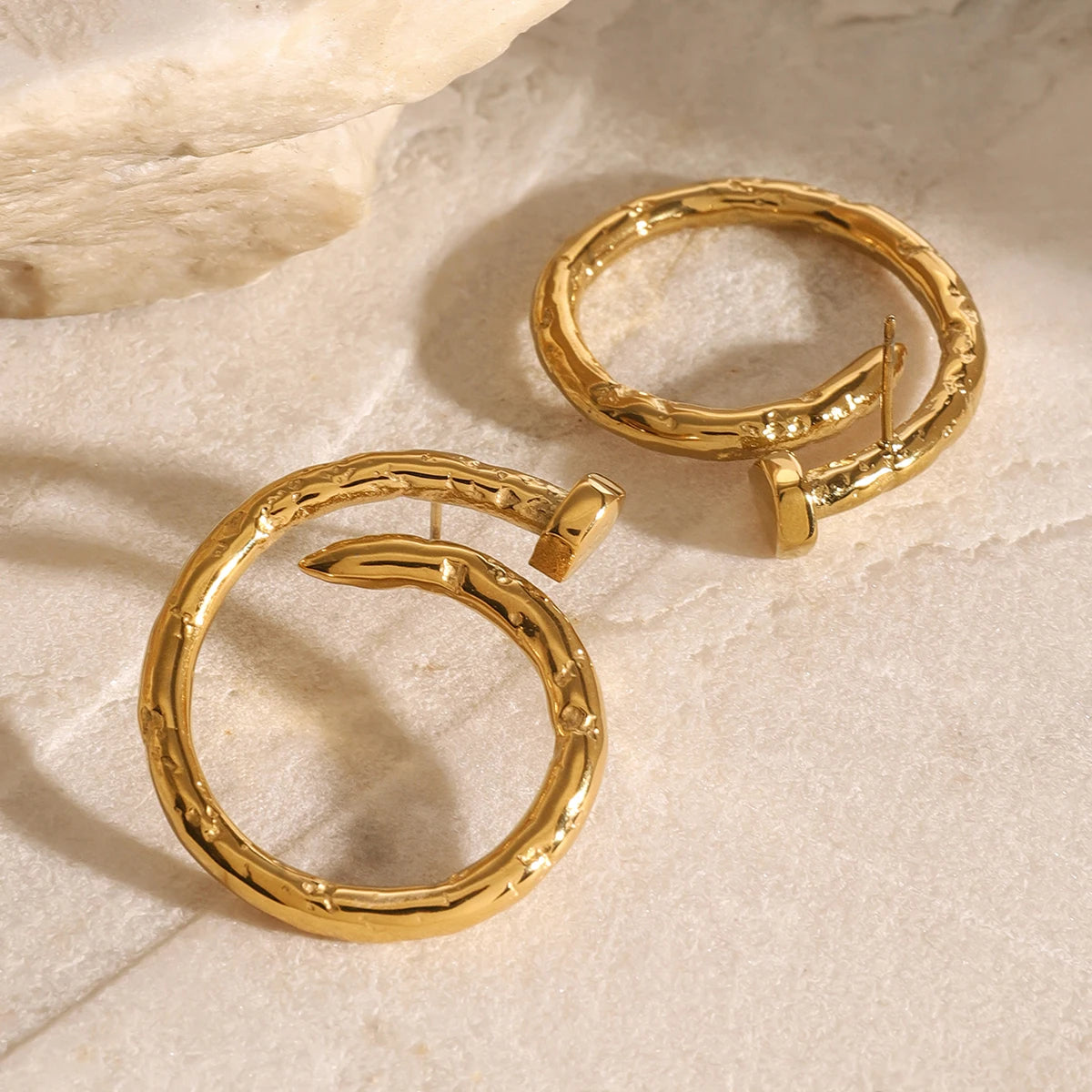 ステンレス304 低ニッケル 水に濡れても錆びにくい 18Kゴールドメッキ ピアス フープ【YJ03111】