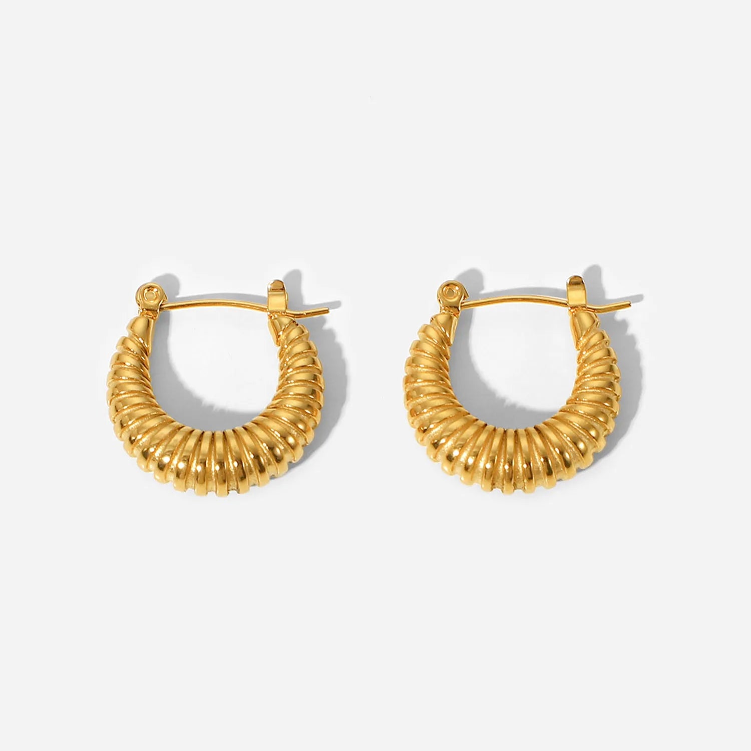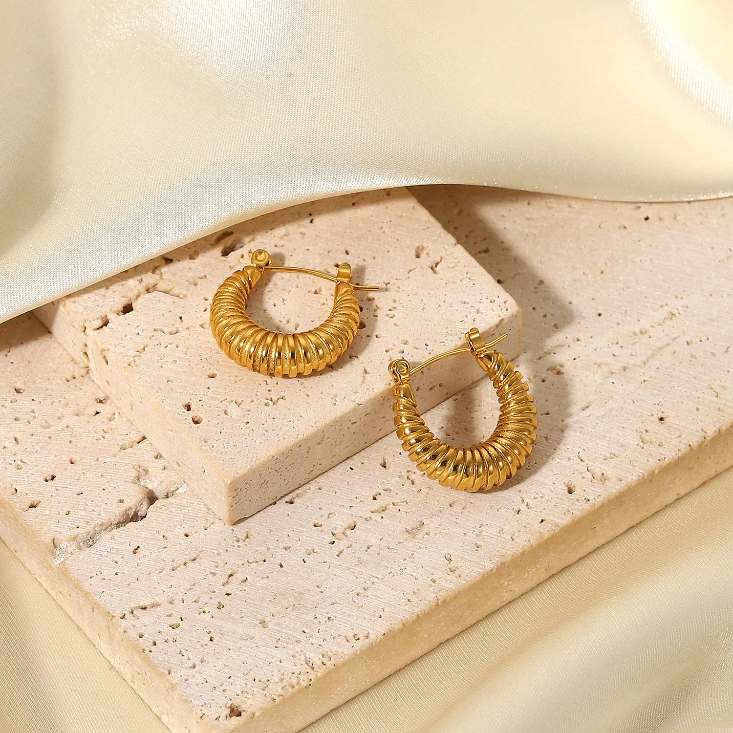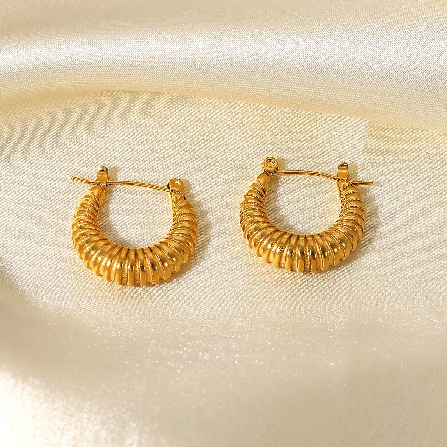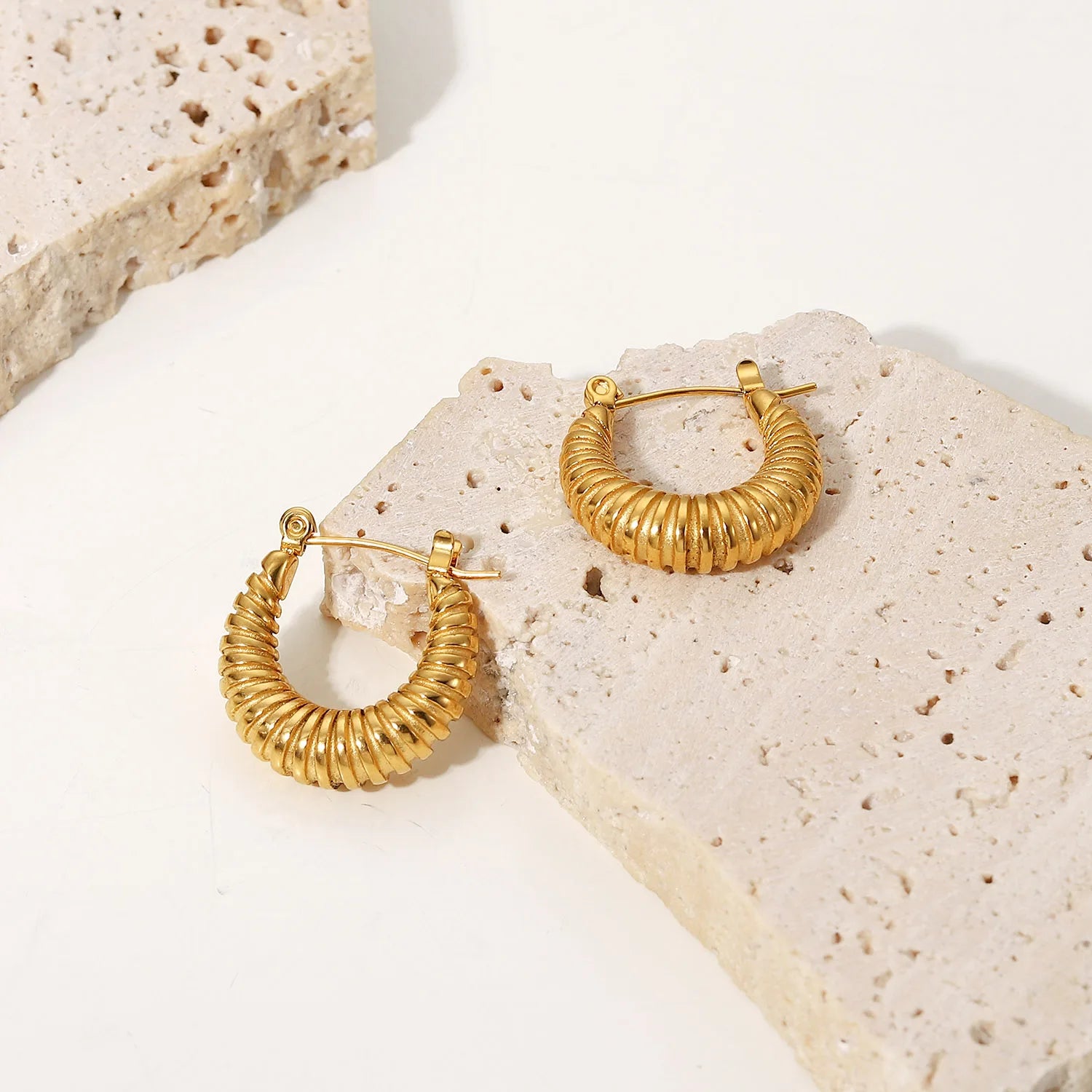 ステンレス304 低ニッケル 水に濡れても錆びにくい 18Kゴールドメッキ ピアス チャンキー フープ 【YJ03518】