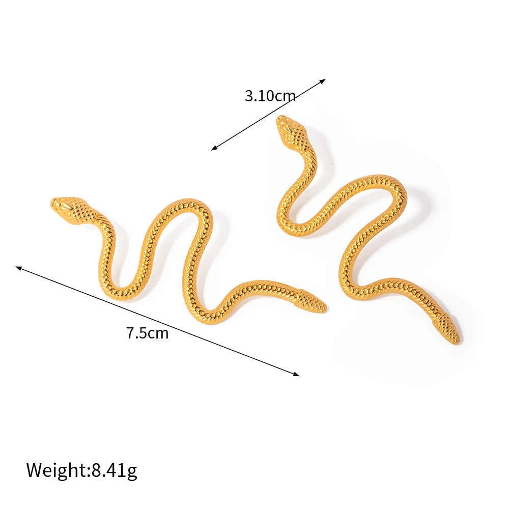 ステンレス304 低ニッケル 水に濡れても錆びにくい 18Kゴールドメッキ ピアス 蛇 ヘビ スネーク 【YJ03520】