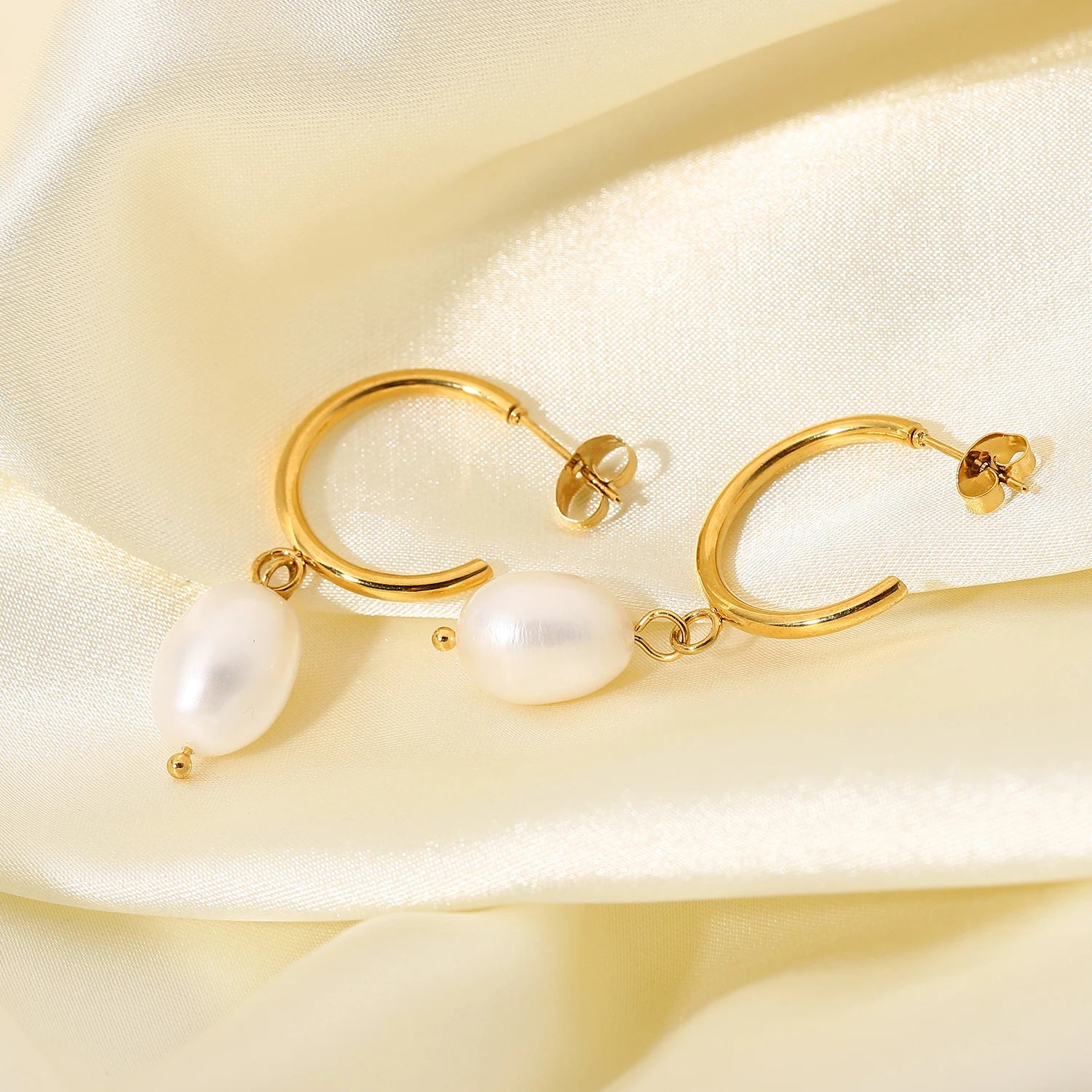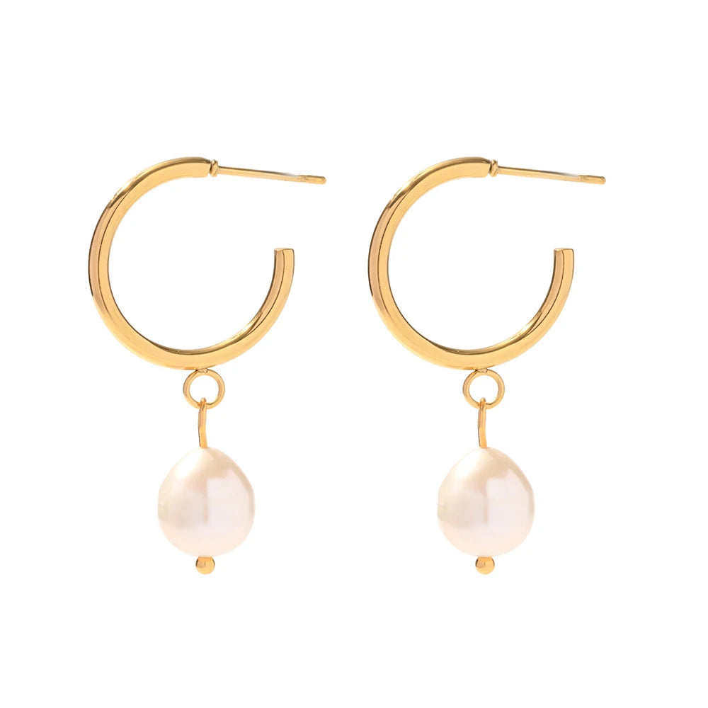 ステンレス304 低ニッケル 水に濡れても錆びにくい 18Kゴールドメッキ ピアス フープ パール 【YJ03545】