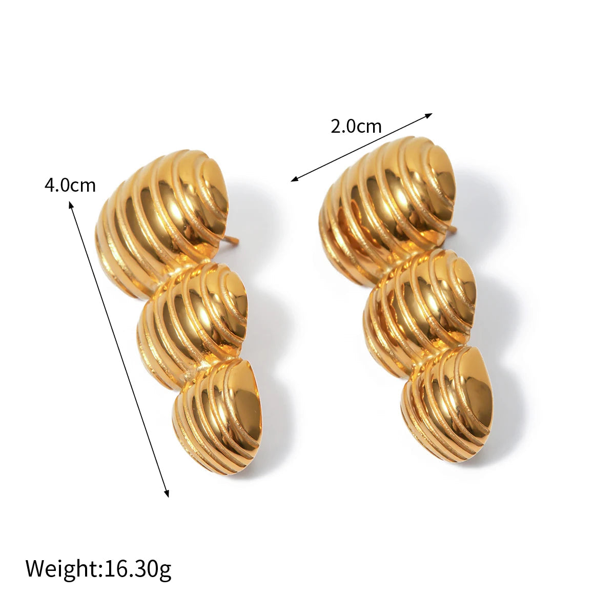 ステンレス304 低ニッケル 水に濡れても錆びにくい 18Kゴールドメッキ ピアス チャンキー 【YJ03560】