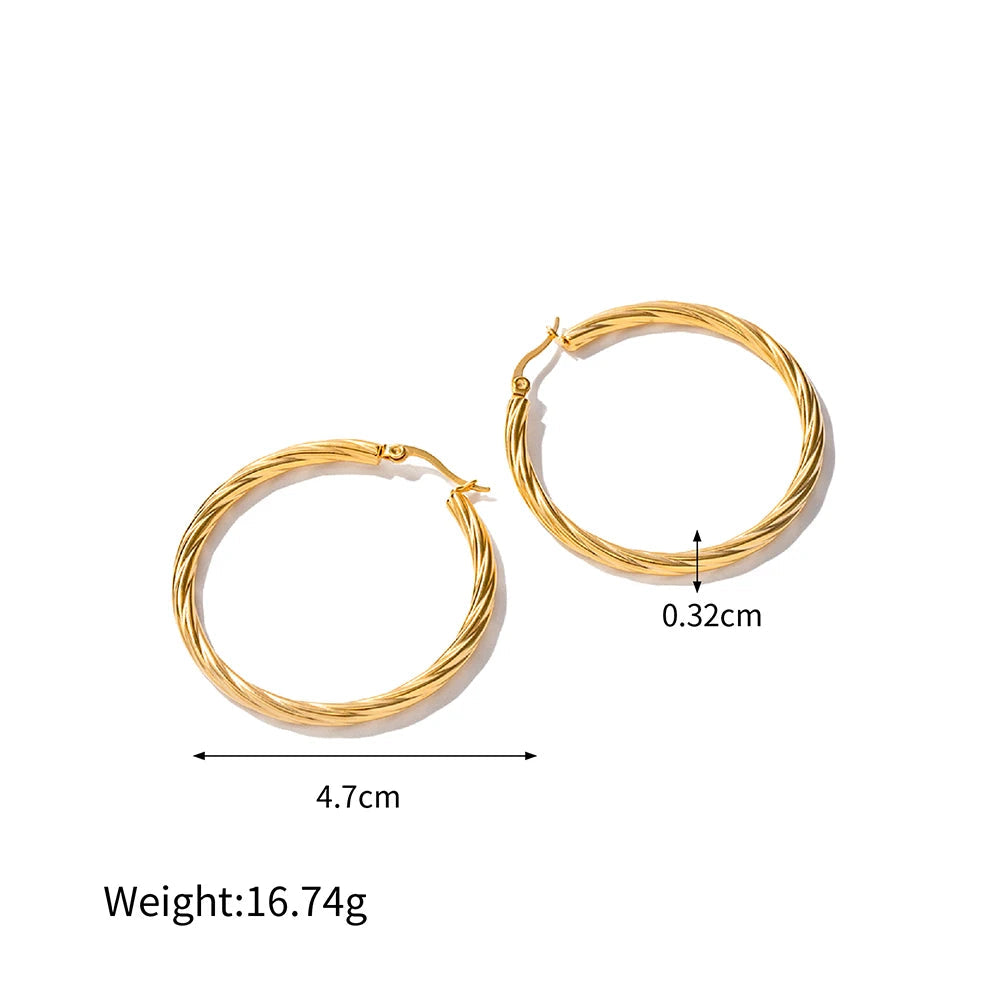 ステンレス304 低ニッケル 水に濡れても錆びにくい 18Kゴールドメッキ ピアス フープ ツイスト 【YJ03568】