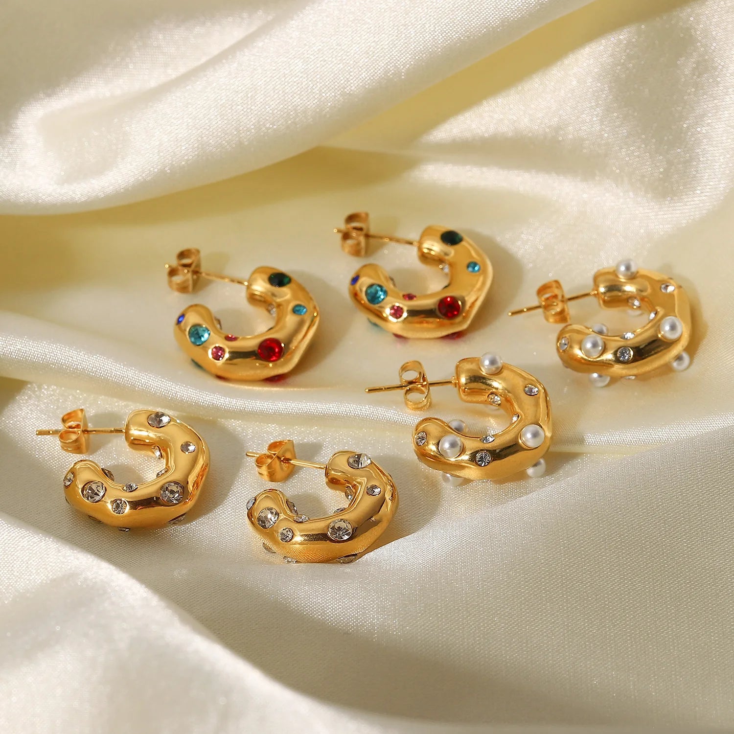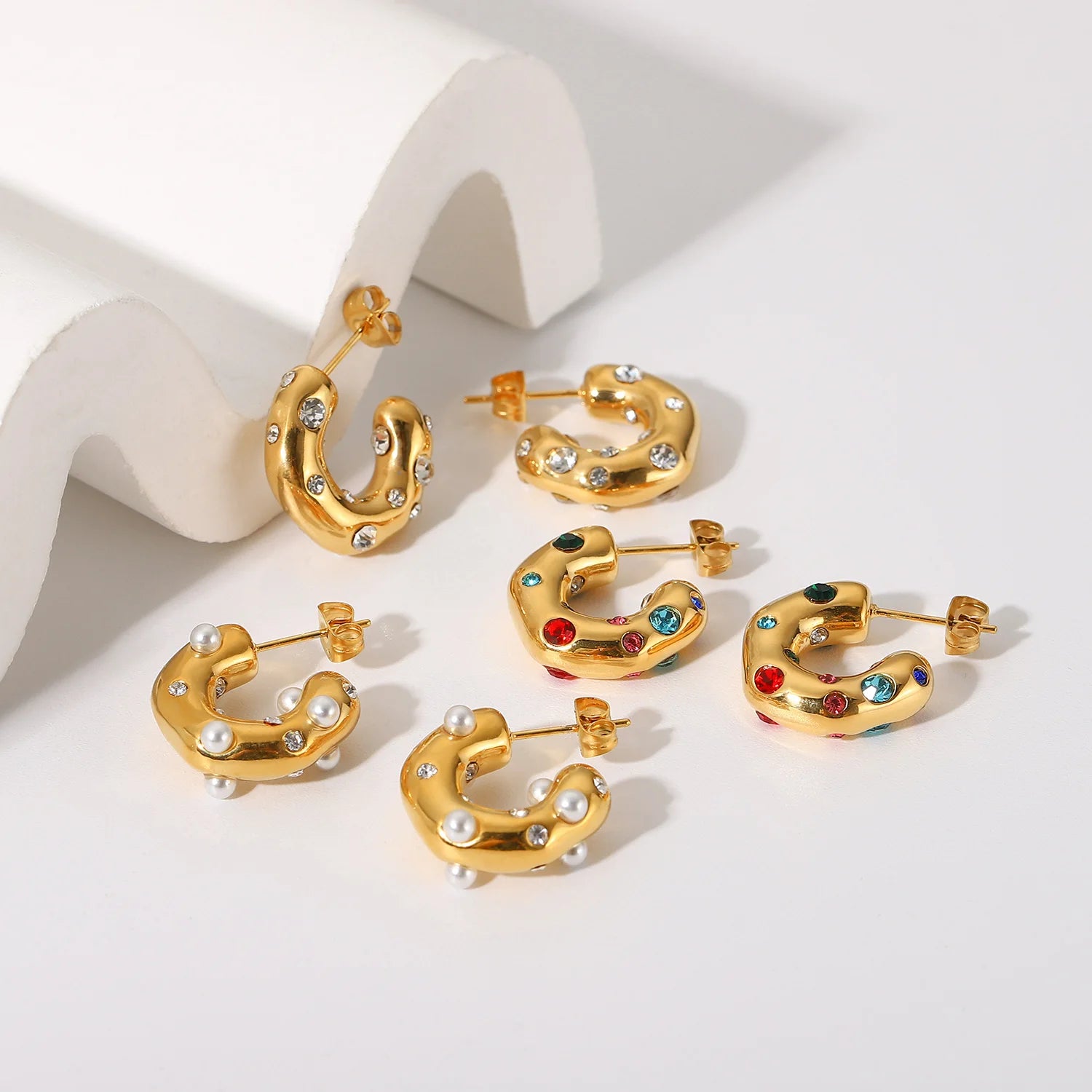 ステンレス304 低ニッケル 水に濡れても錆びにくい 18Kゴールドメッキ ピアス ジルコニア パール 【YJ03583】