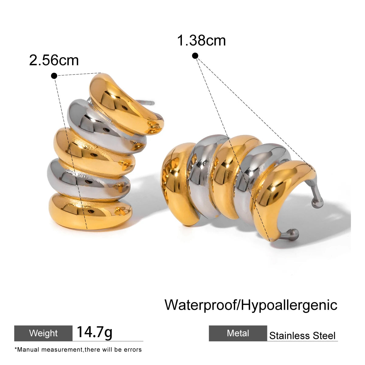 - ピアスのポスト部分は素材の特性上、キャッチがきつく感じられる場合や、スムーズに取り外せないことがありますが、これは不良品ではありませんのでご了承ください。特に新品時はゴールドメッキコーティングの厚みにより、やや固めに感じることがございます。無理に力を加えるとポストの曲がりや破損につながる可能性があるため、優しくゆっくりと着脱いただくことをおすすめします。