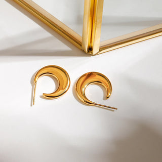 ステンレス304 低ニッケル 水に濡れても錆びにくい 18Kゴールドメッキ ピアス 月 フープ【YJ02642】
