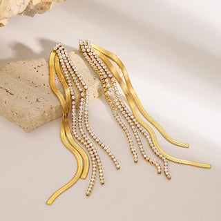 ステンレス304 低ニッケル 水に濡れても錆びにくい 18Kゴールドメッキ ピアス タッセル ジルコニア 【YJ02665】