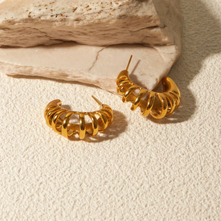 ステンレス304 低ニッケル 水に濡れても錆びにくい 18Kゴールドメッキ ピアス フープ ツイスト 【YJ02729】