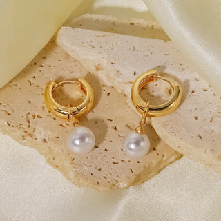 ステンレス304 低ニッケル 水に濡れても錆びにくい 18Kゴールドメッキ ピアス フープ パール 【YJ02478】
