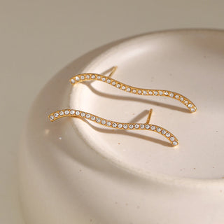 ステンレス304 低ニッケル 水に濡れても錆びにくい 18Kゴールドメッキ ピアス ウェーブ ジルコニア【YJ02217】