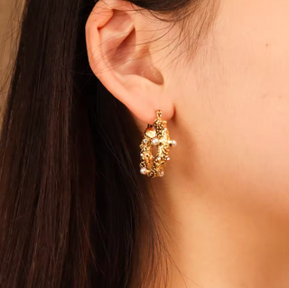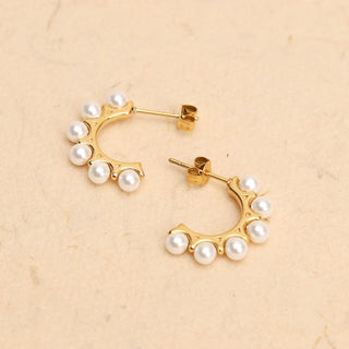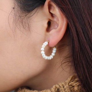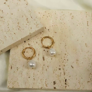 316Lサージカルステンレス 18Kゴールドメッキ ピアス フープ パール【NY01660】