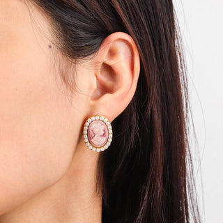 316Lサージカルステンレス 18Kゴールドメッキ ピアス パール カメオ アンティーク【NY01291】