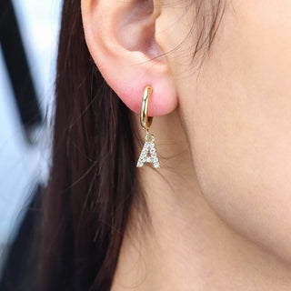 316Lサージカルステンレス ピアス フープ チャーム アルファベット A ジルコニア【NY01420】