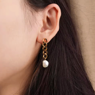316Lサージカルステンレス ピアス チェーン バロックパール【NY01688】