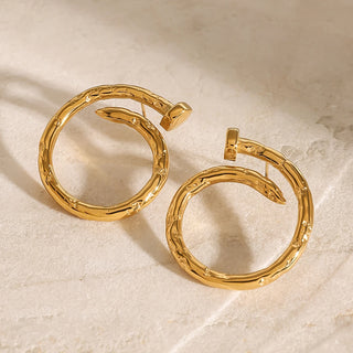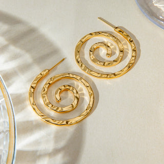 ステンレス304 低ニッケル 水に濡れても錆びにくい 18Kゴールドメッキ ピアス スパイラル フープ 【YJ03063】