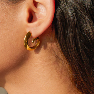 ステンレス304 低ニッケル 水に濡れても錆びにくい 18Kゴールドメッキ ピアス フープ ツイスト 【YJ03568】