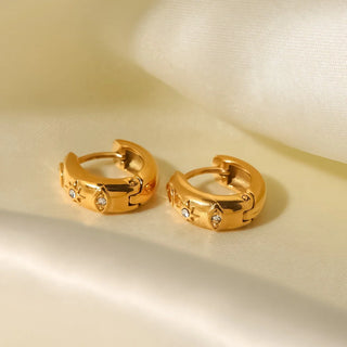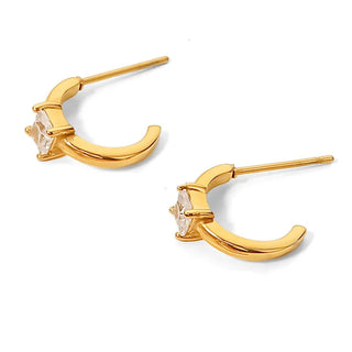 ステンレス304 低ニッケル 水に濡れても錆びにくい 18Kゴールドメッキ ピアス フープ ジルコニア 【YJ03591】