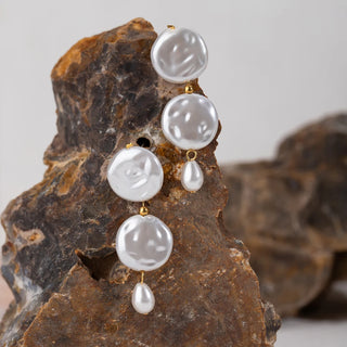 ステンレス304 低ニッケル 水に濡れても錆びにくい 18Kゴールドメッキ ピアス チャンキー バロックパール 【YJ03057】