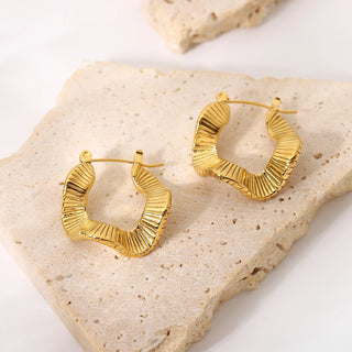 ステンレス304 低ニッケル 水に濡れても錆びにくい 18Kゴールドメッキ ピアス ウェーブ フープ 【YJ01742】