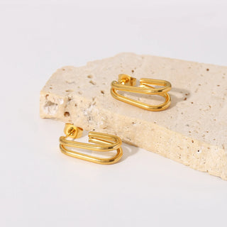 ステンレス304 低ニッケル 水に濡れても錆びにくい 18Kゴールドメッキ ピアス 2層 チャンキー 【YJ01737】
