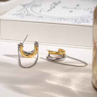 ステンレス304 低ニッケル 水に濡れても錆びにくい 18Kゴールドメッキ ピアス チェーン 【YJ01403】