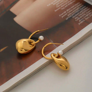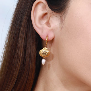 ステンレス304 低ニッケル 水に濡れても錆びにくい 18Kゴールドメッキ ピアス フープ シェル 貝殻 パール 【YJ01391】