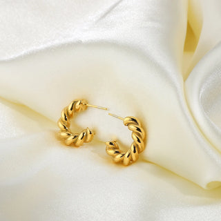 ステンレス304 低ニッケル 水に濡れても錆びにくい 18Kゴールドメッキ ピアス フープ ツイスト 【YJ01399】