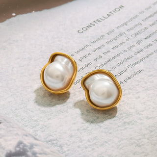ステンレス304 低ニッケル 水に濡れても錆びにくい 18Kゴールドメッキ ピアス バロックパール 【YJ01370】