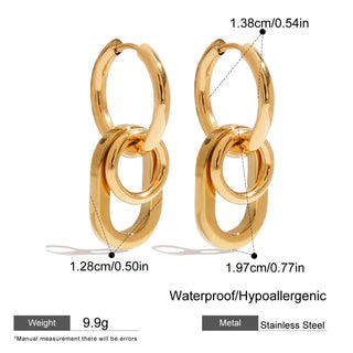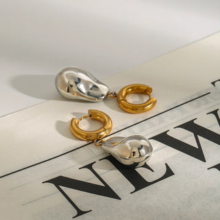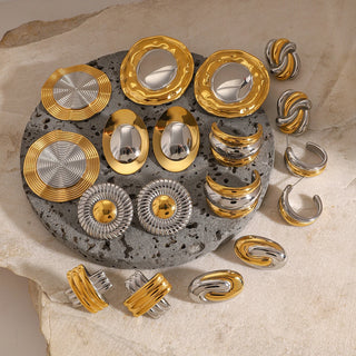ステンレス304 ニッケルフリー 水に濡れても錆びにくい 18Kゴールドメッキ チャンキー ピアス イヤリング 【YJ00973】