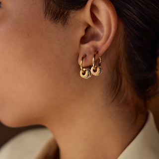 ステンレス304 ニッケルフリー 水に濡れても錆びにくい 18Kゴールドメッキ フープ サークル ピアス ジルコニア 【YJ00906】