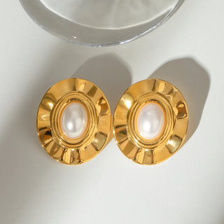 ステンレス304 ニッケルフリー 水に濡れても錆びにくい 18Kゴールドメッキ ピアス イヤリング シェル 貝殻 パール 【YJ00990】