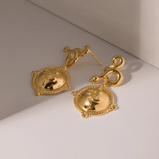 ステンレス304 ニッケルフリー 水に濡れても錆びにくい 18Kゴールドメッキ チェーン タッセル ピアス イヤリング 蛇 ヘビ スネーク パール 【YJ00998】