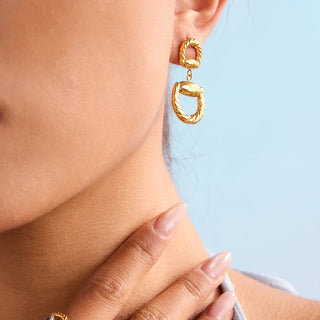 ステンレス304 ニッケルフリー 水に濡れても錆びにくい 18Kゴールドメッキ チャンキー ピアス ティアドロップ【YJ00601】
