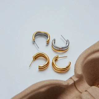 ステンレス304 ニッケルフリー 水に濡れても錆びにくい 18Kゴールドメッキ フープ ピアス 【YJ00608】