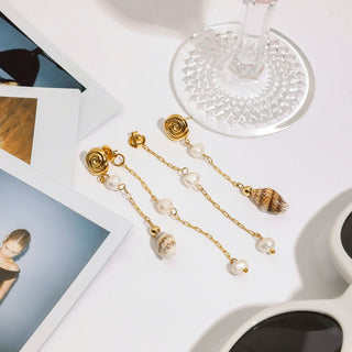 ステンレス304 ニッケルフリー 水に濡れても錆びにくい 18Kゴールドメッキ ピアス シェル 貝殻 【YJ00592】