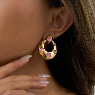 ステンレス304 ニッケルフリー 水に濡れても錆びにくい 18Kゴールドメッキ フープ ピアス ジルコニア 【YJ00023】