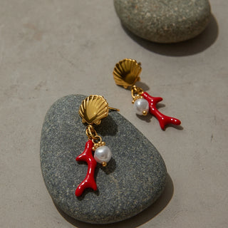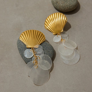 ステンレス304 ニッケルフリー 水に濡れても錆びにくい 18Kゴールドメッキ タッセル ピアス シェル 貝殻 【YJ00086】
