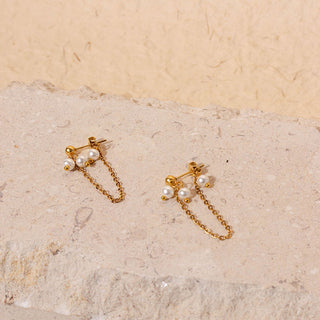 316Lサージカルステンレス ピアス チェーン パール【NY00941】