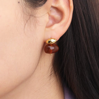 316Lサージカルステンレス 18Kゴールドメッキ ピアス ティアドロップ 天然石風ストーン【NY01025】