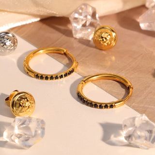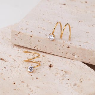 316Lサージカルステンレス 18Kゴールドメッキ ピアス スパイラル フープ ジルコニア【NY00638】