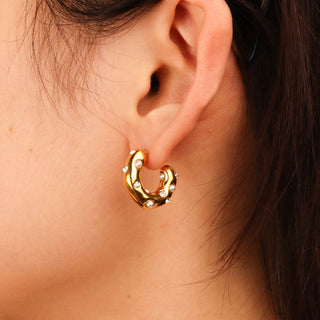 316Lサージカルステンレス 18Kゴールドメッキ ピアス フープ ジルコニア パール【NY00592】