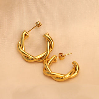 316Lサージカルステンレス 18Kゴールドメッキ ピアス フープ ツイスト 【NY00621】