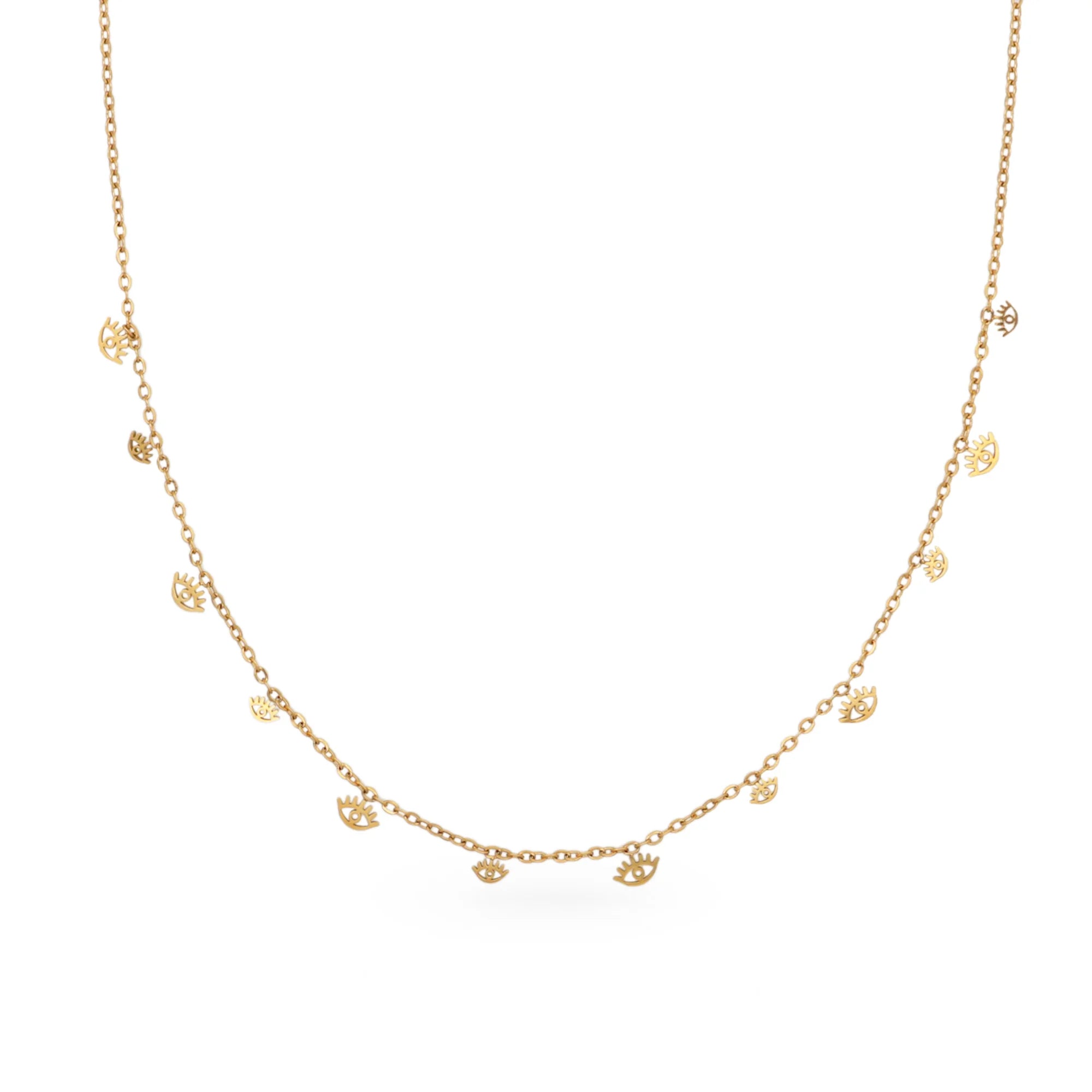 316Lサージカルステンレス 18Kゴールドメッキ ネックレス チャーム 目 アイズ 葉 【NY01338】