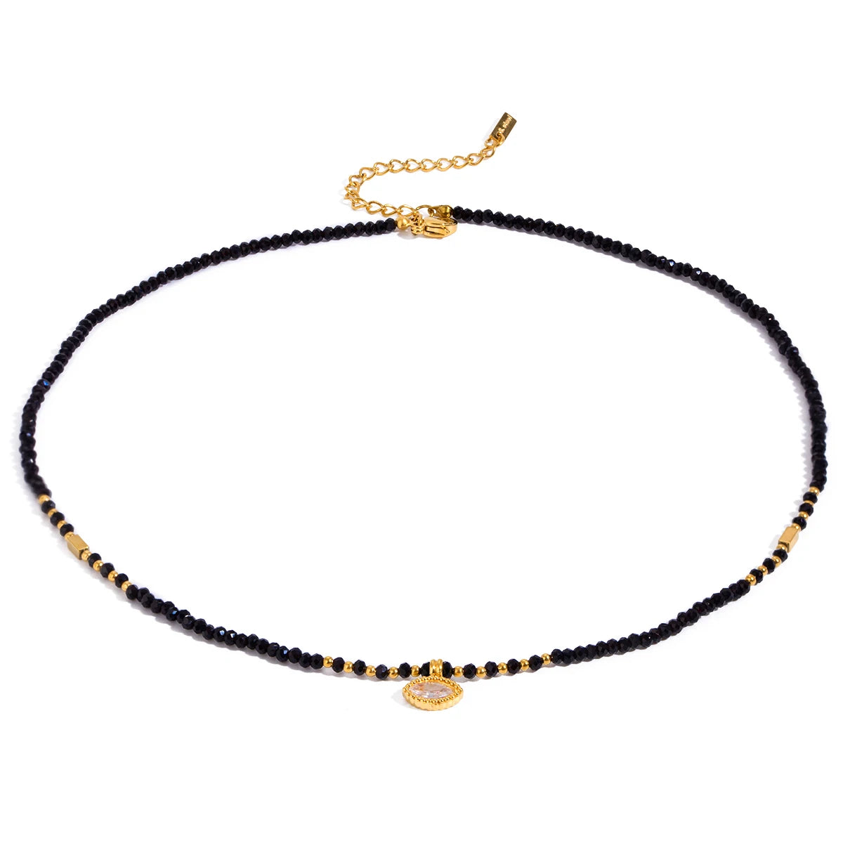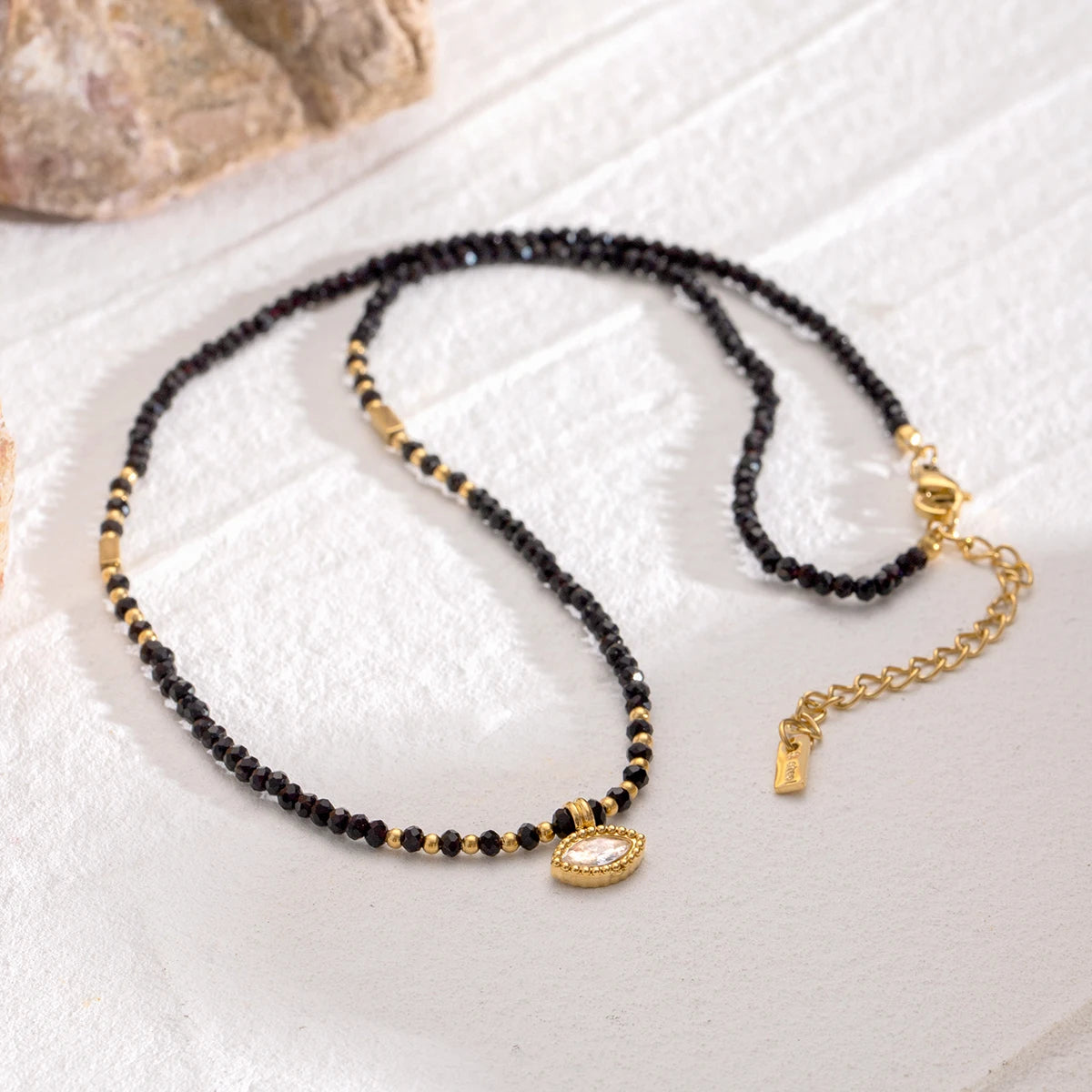 ステンレス304 ニッケルフリー 水に濡れても錆びにくい 18Kゴールドメッキ ネックレス ビーズ 目 アイズ【YJ00593】