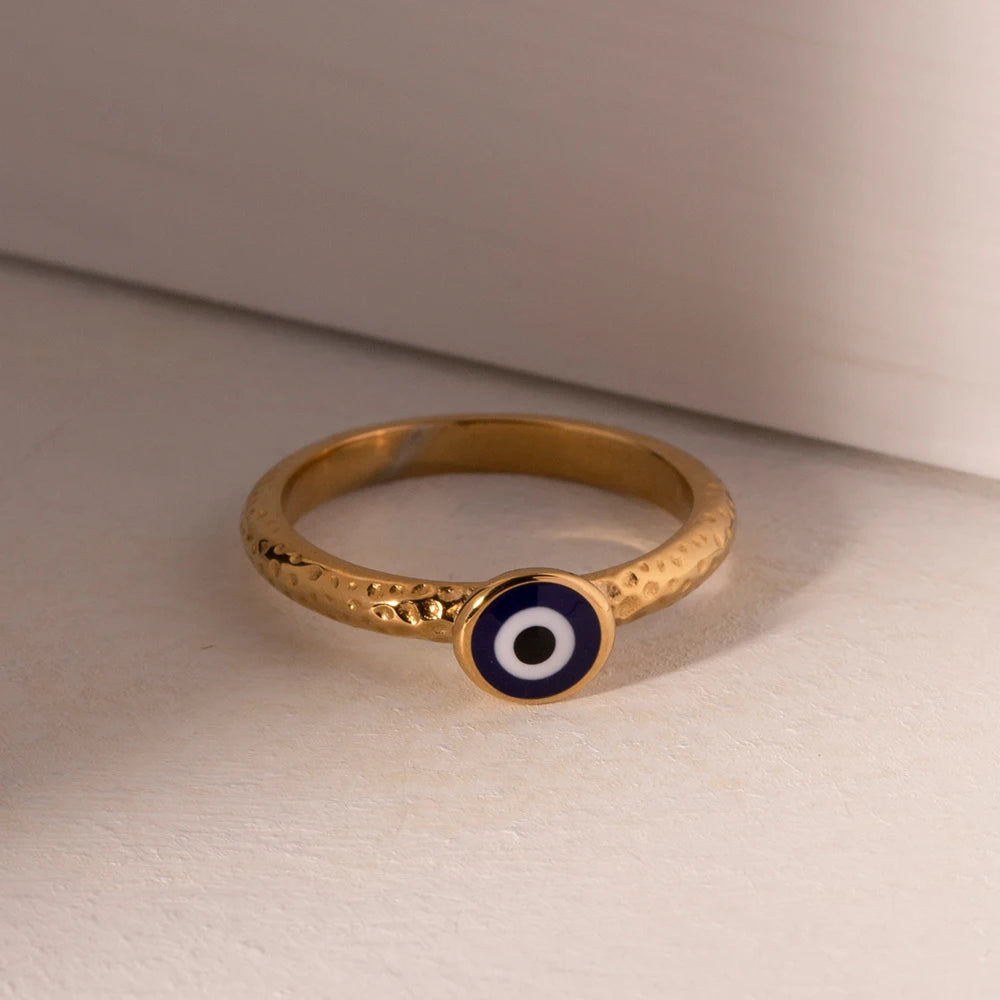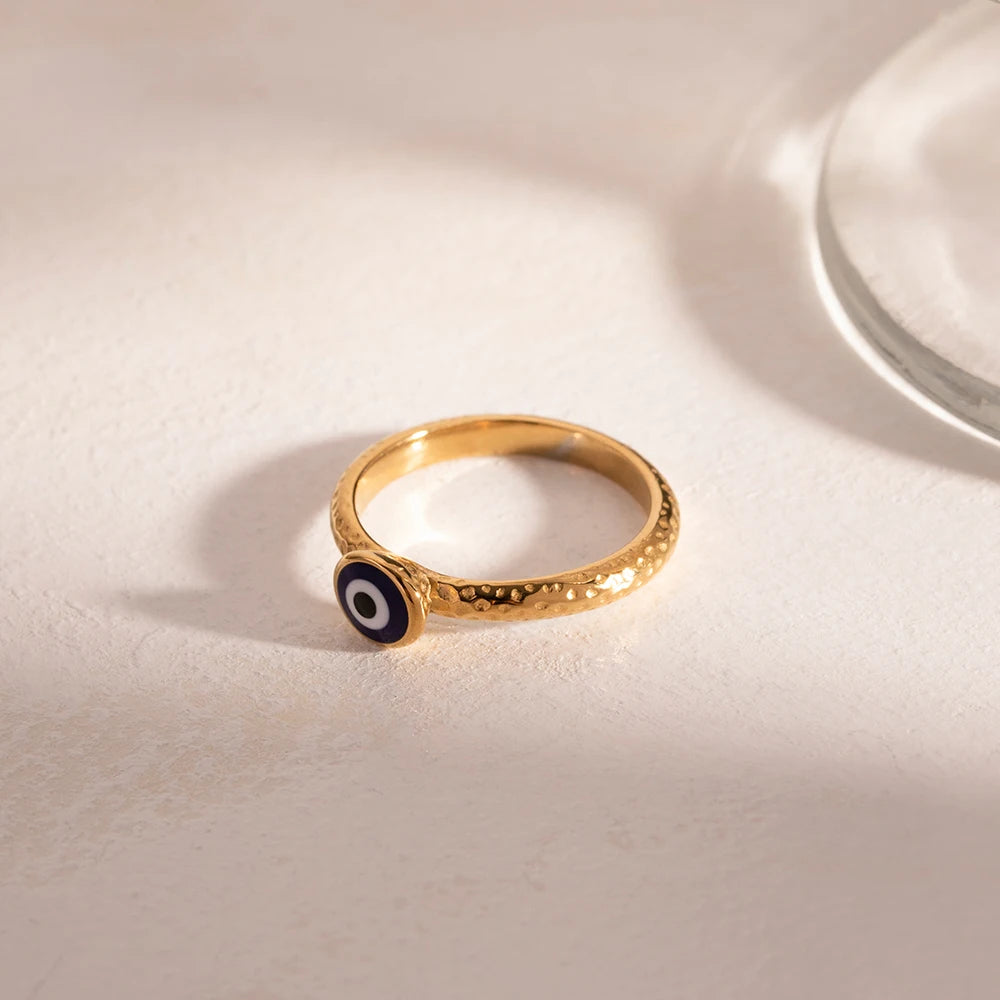 ステンレス304 低ニッケル 水に濡れても錆びにくい 18Kゴールドメッキ リング エナメル 目 アイ【YJ02868】