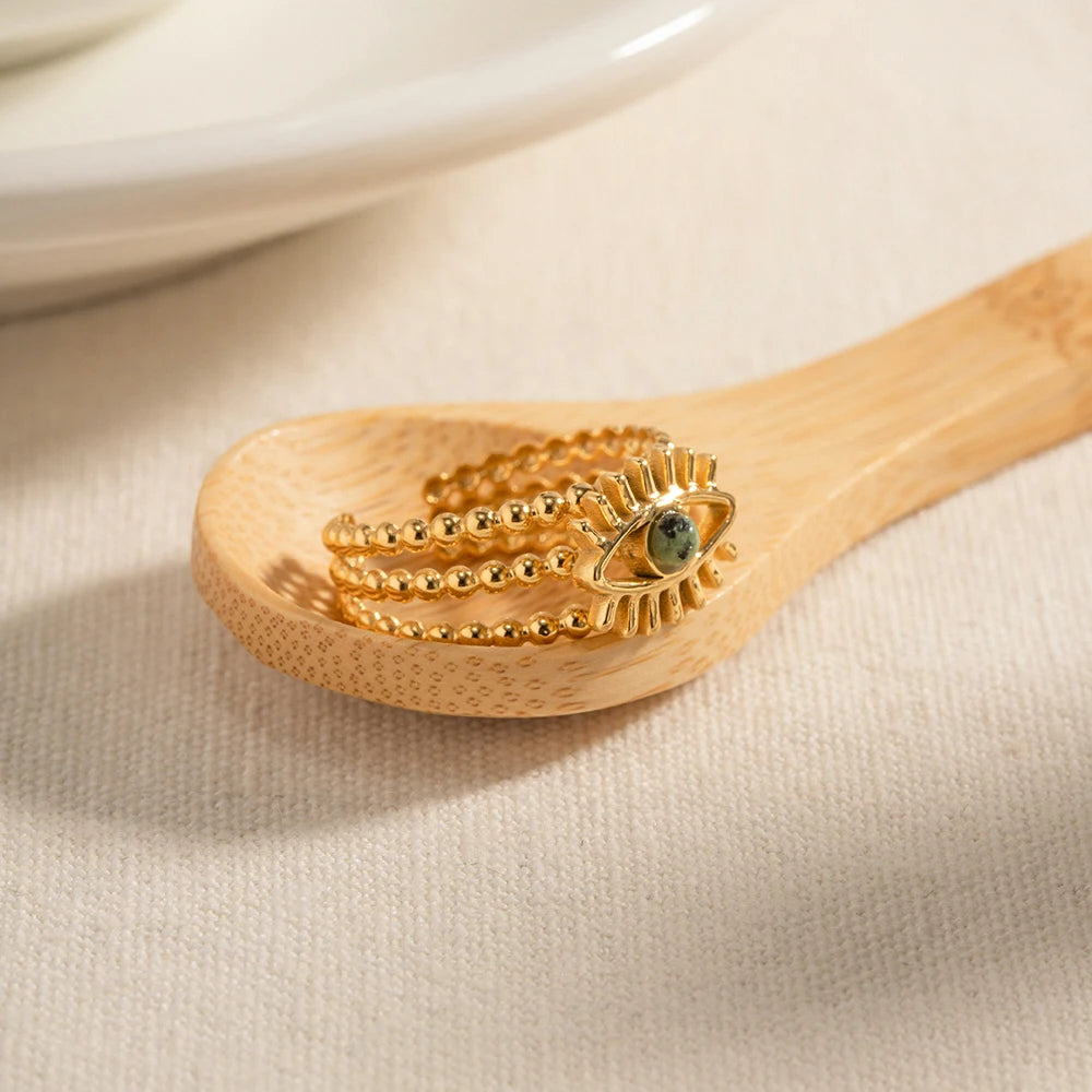 ステンレス304 低ニッケル 水に濡れても錆びにくい 18Kゴールドメッキ リング 目 アイ 【YJ03837】