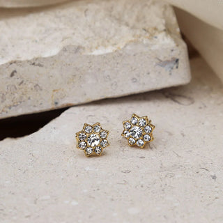 高品質真鍮 A3ランクジルコニア 18Kゴールドメッキ ピアス フラワー 花 アイスドアウト ヒップホップ【NJ00051-8】