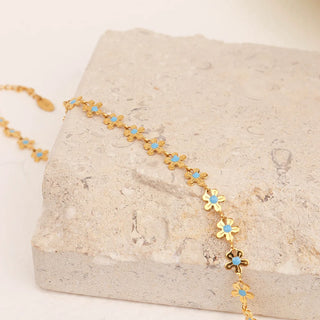 316Lサージカルステンレス 18Kゴールドメッキ アンクレット フラワー 花 エナメル【NY01588】